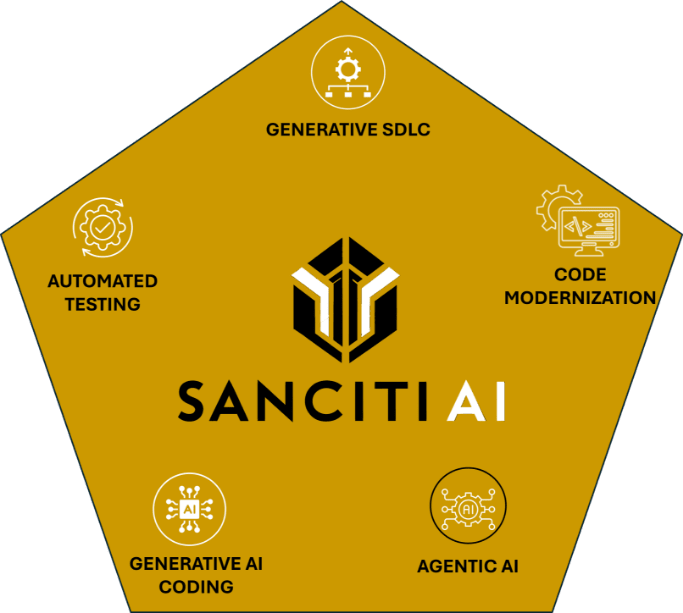 SancitiAl is the leading generative Al framework that incorporates code generation, testing automation, document generation, reverse engineering, with flexibility and scalability.
